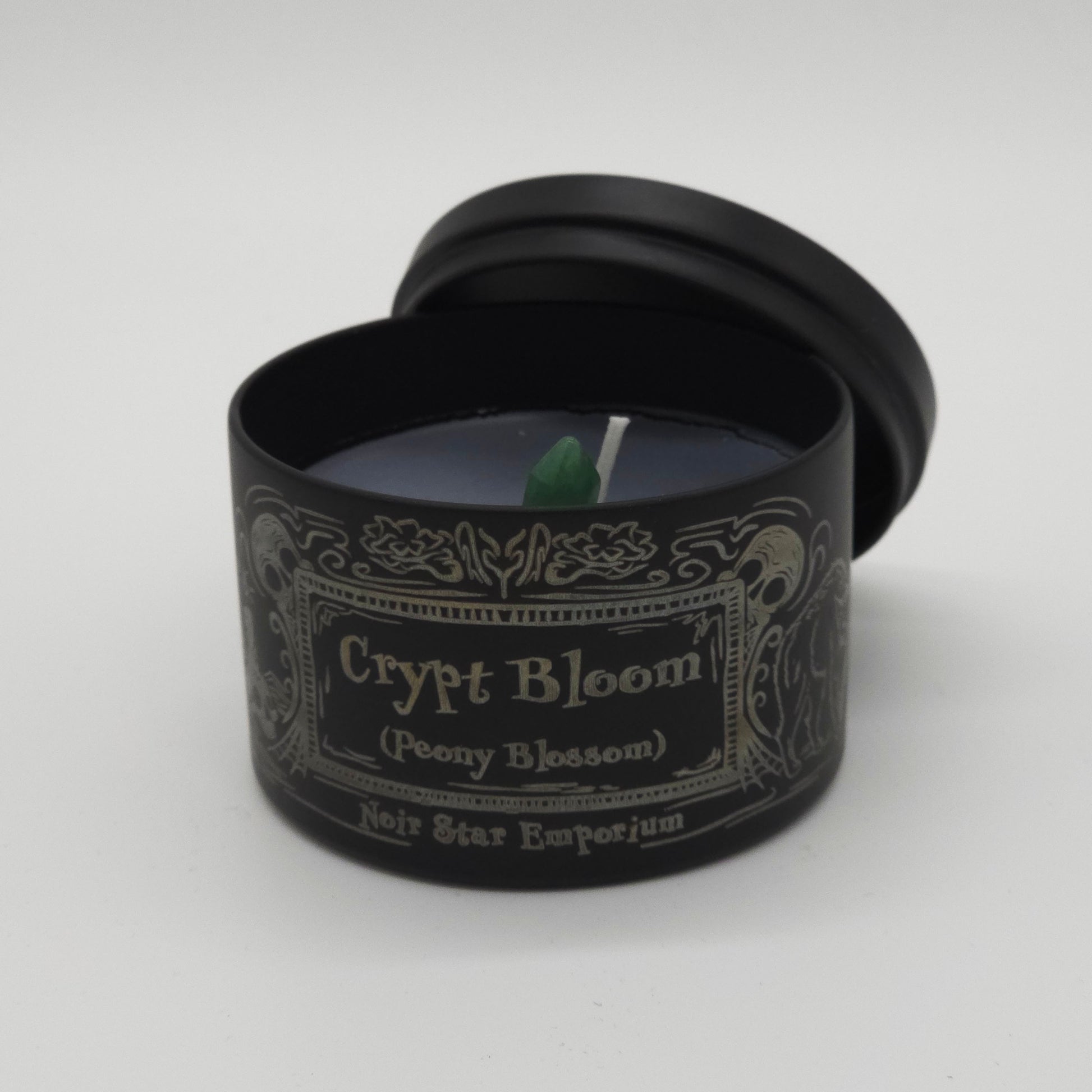 Candle tins with original Noir Star Emporium artwork engraved on the side.