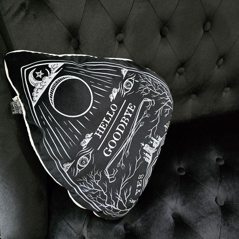 Velvet throw pillow that makes the perfect addition to any Ouija Board enthusiast collection.